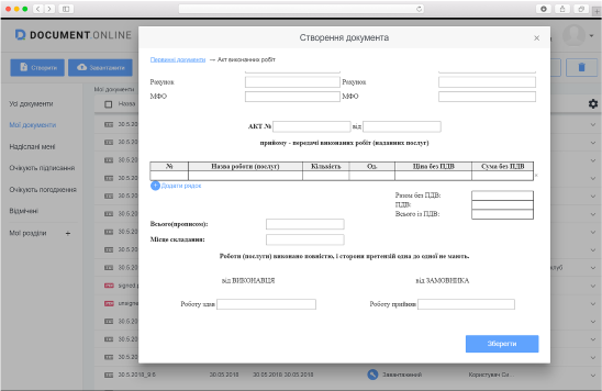 Завантажуйте документи, або створюйте документи для обміну з контрагентами з шаблонів системи.