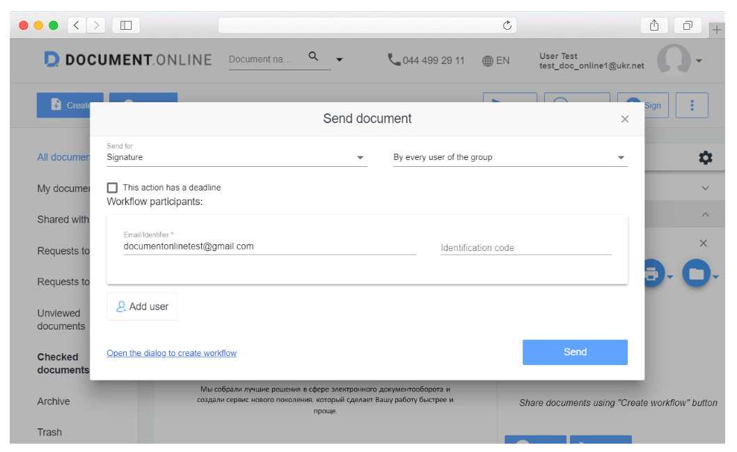 Control approval workflow and e-signature workflow processes together with Document.Online.